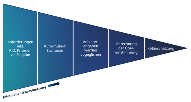 Basierend auf den Anforderungsbeschreibungen, leistet die Stackgini KI eine Transferleistung, die es ihr erlaubt, die Anforderungen mit den Angaben von Anbietern abzugleichen.