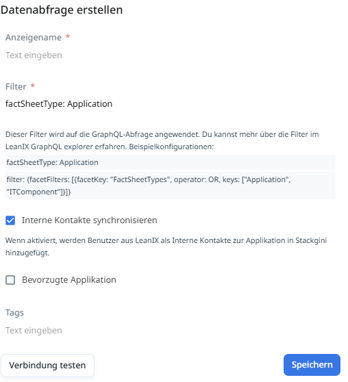 Definiert die GraphQL Query und damit, welche Fact Sheets aus LeanIX importiert werden. -