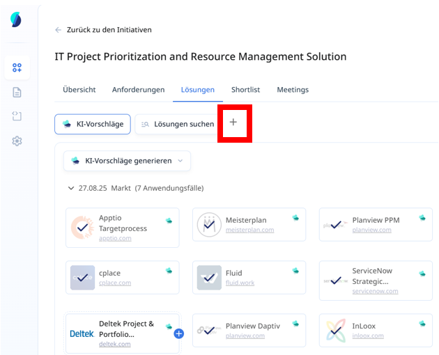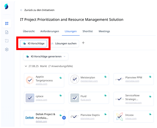 By clicking on this function, only your own application portfolio is checked against the requirements and matching portfolio solutions are suggested.